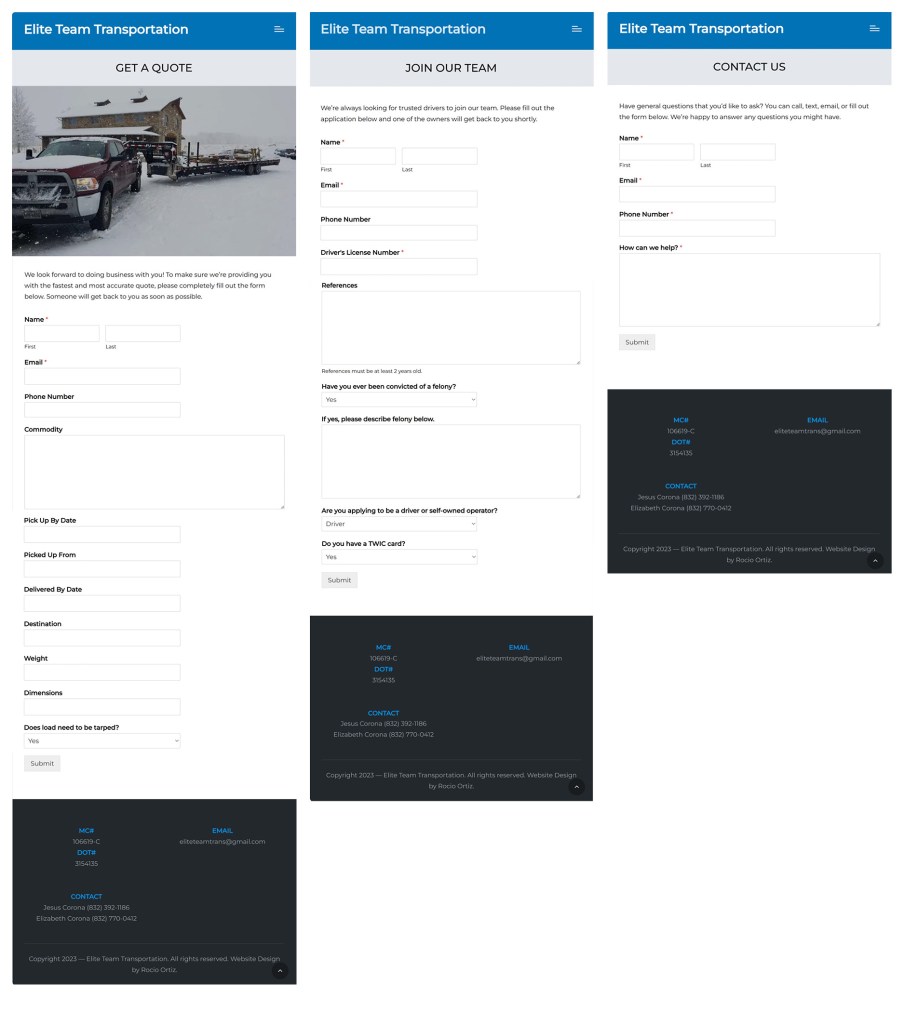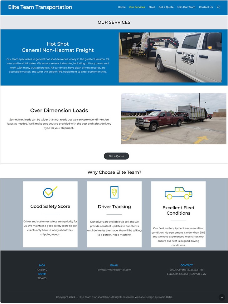 I researched other hot shot trucking companies to learn more about the industry and give me insights on how to highlight the messaging for Elite Team Transportation.