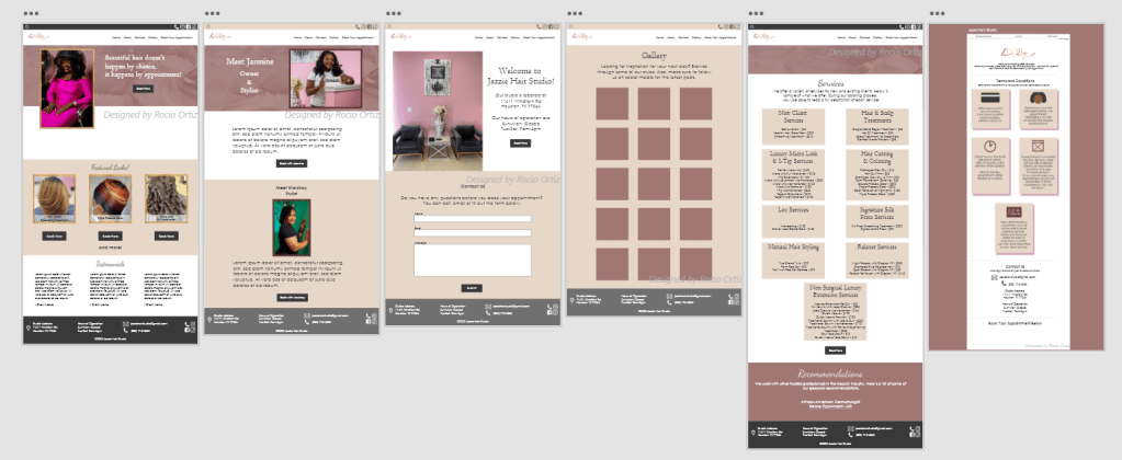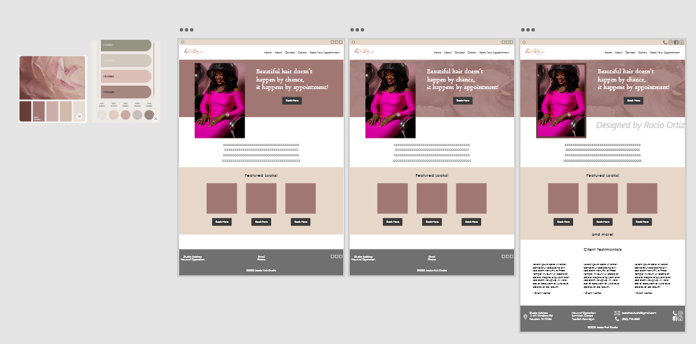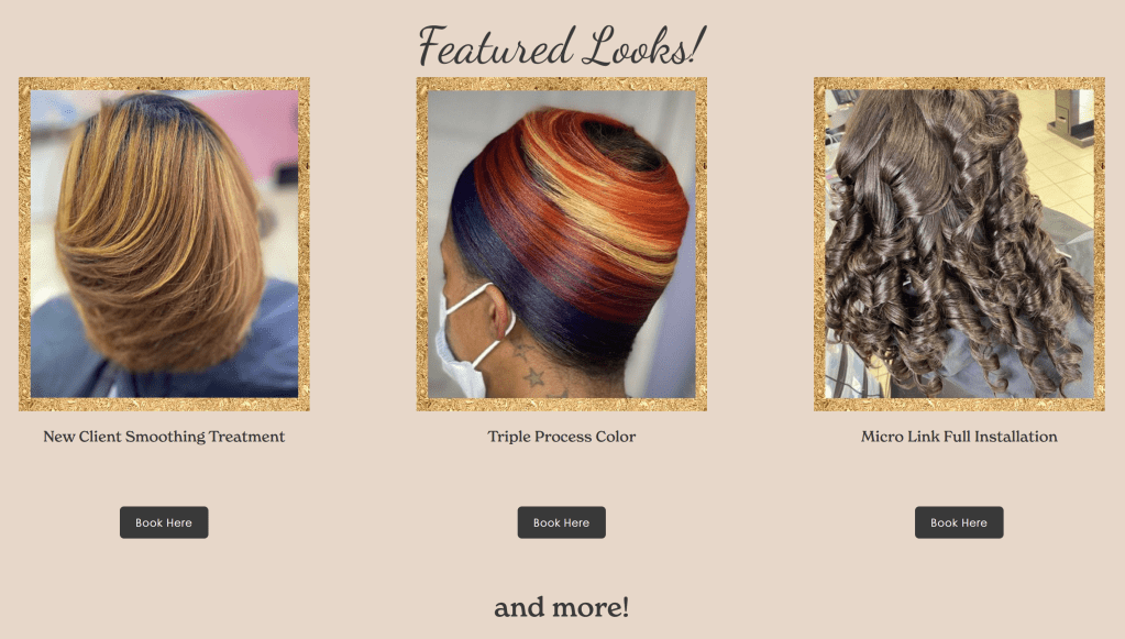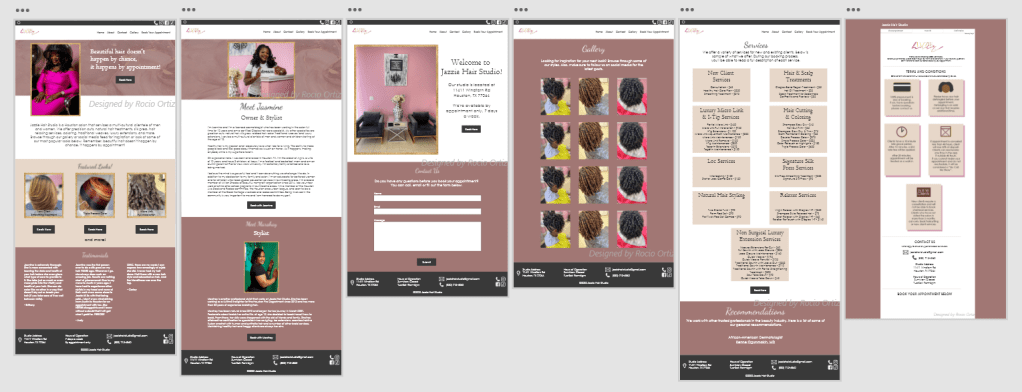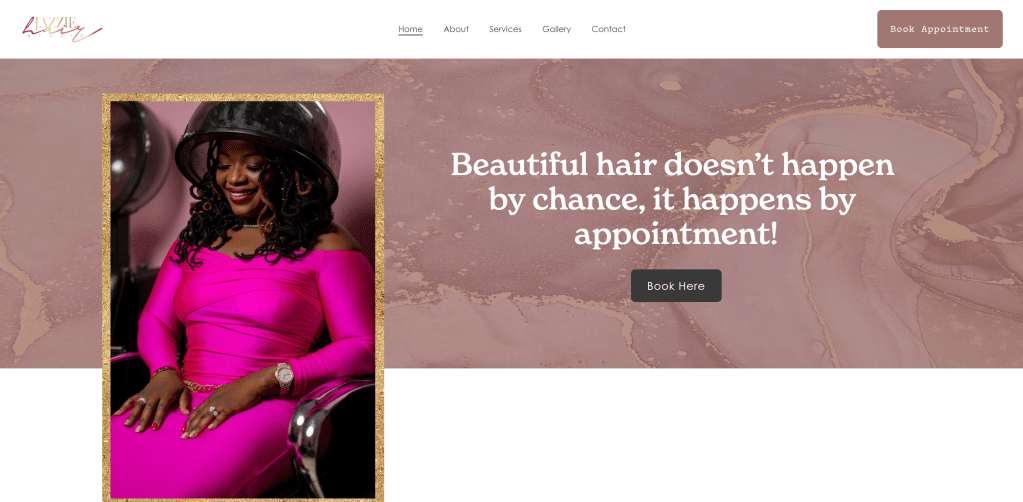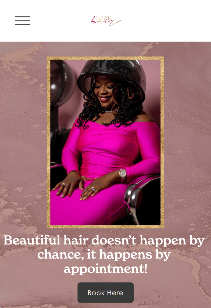 During the design phase, I ensured to use some of the fun elements in her salon and use it across the website. The salon had a decorative wall where many customers posed for pictures after their hair service and posted on social media. I used that background for the website, being careful that the images did now slow down the load time.